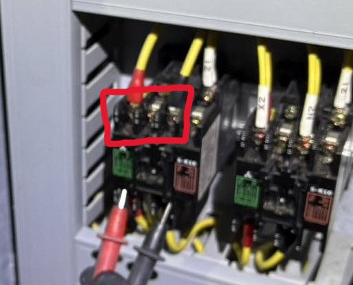 試しに、マグネットコンタクターの二次側にテスターを当てると……電圧なし